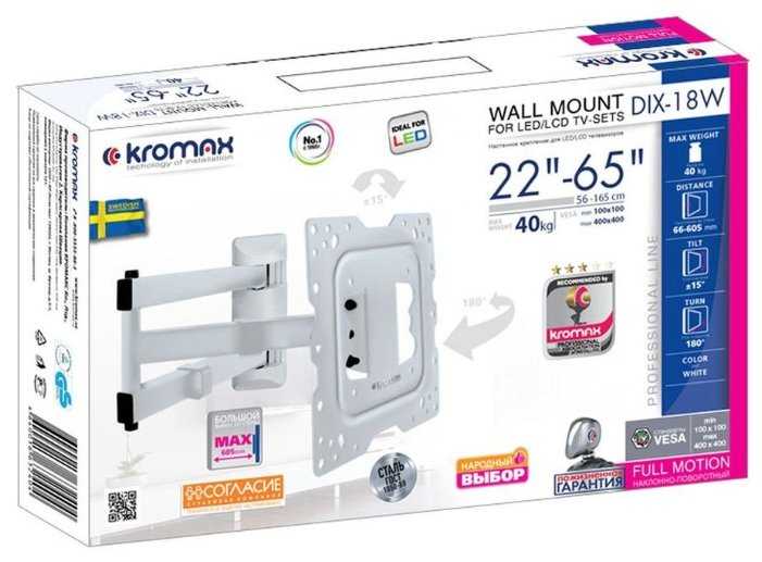 Выбирал крепление под телевизор самсунг 49", и с выбором не ошибся. крепление внушает доверие!Главным критерием выбора было: 49диагональ и возможно повернуть телик на 90 градусов. качественно изготовлено, хорошая крепкая сталь, ничего не гнется и не болтается. Легко держит телевизор 15кг. без страха полностью отодвигаю телевизор от стены на расстояние полного вылета крепления! кстати крепление позволяет повернуть 49 дюймовый телик на 90 градусов перпендикулярно стене и смотреть его с другого угла комнаты.