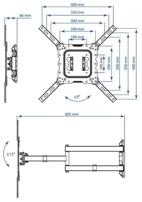 - + Можно выдвинуть телевизор на огромное расстояние! Стандартный набор углов наклона.