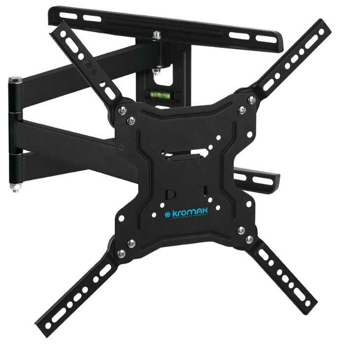 Отлично держит телевизор 50', при желание можно прекратить в стену ещë дополнительные болты. Встроенный уровень очень помогает при разметке. Плюс очень хорошо выдвигается кронштей и телевизор полностью на 90 градусов поворачивается в любую сторону
