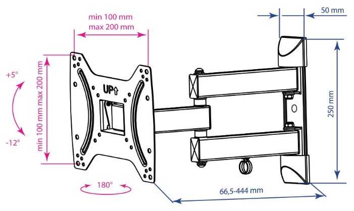 - Поворот в стороны на 20 градусов (до 90 для малых ТВ), наклон на 15 градусов для оптимального ракурса.