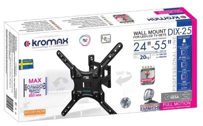 Ранее приобретал кронштейн Kromax и был удивлен качеством и вниманием к деталям. При получении этой модели сразу подумал что это подделка. Не знаю так это или нет, но на качестве сэкономили максимально и удобство регулировки оставляет желать лучшего. Это то что называют «китаем». Пока повесил маленький телевизор, но если буду брать телевизор больше, то кронштейн буду тоже менять.