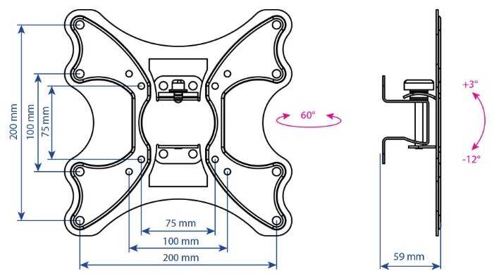 | Стандарт крепления VESA : | 100x100 мм, 200x100 мм, 200x200 мм, 200x300 мм, 300x200 мм, 300x300 мм, 400x200 мм, 400x300 мм, 400x400 мм, 500x200 мм, 500x300 мм, 500x400 мм, 600x200 мм, 600x300 мм, 600x400 мм, 75x75 мм |