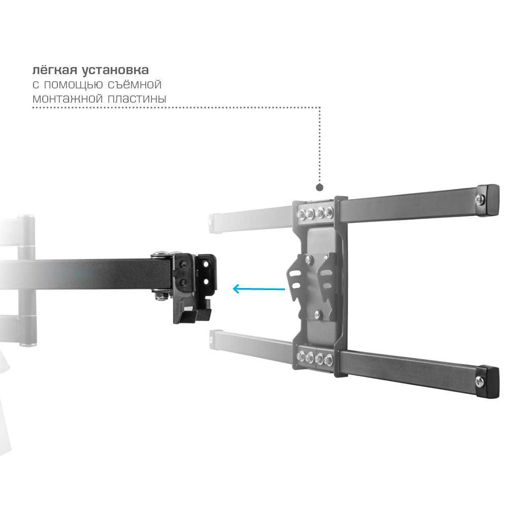 Подобрать эту модель креплений для нового телевизора в гостиную. Сначала думал, что самостоятельно его установлю, но потом решил вызвать мастера, чтобы все было надежно закреплено. Кронштейн просто отличный! Легко крепится к стене, выглядит стильно и держит телевизор крепко. Теперь у нас в гостиной больше свободного пространства, телевизор висит на уровне глаз и смотреть на него гораздо удобнее. Спасибо за такой удобный и надежный товар!