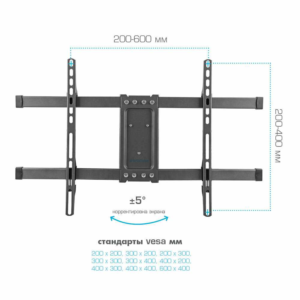 | Стандарт Vesa : | 200x200 мм, 200x300 мм, 300x200 мм, 300x300 мм, 300x400 мм, 400x200 мм, 400x300 мм, 400x400 мм, 600x400 мм |