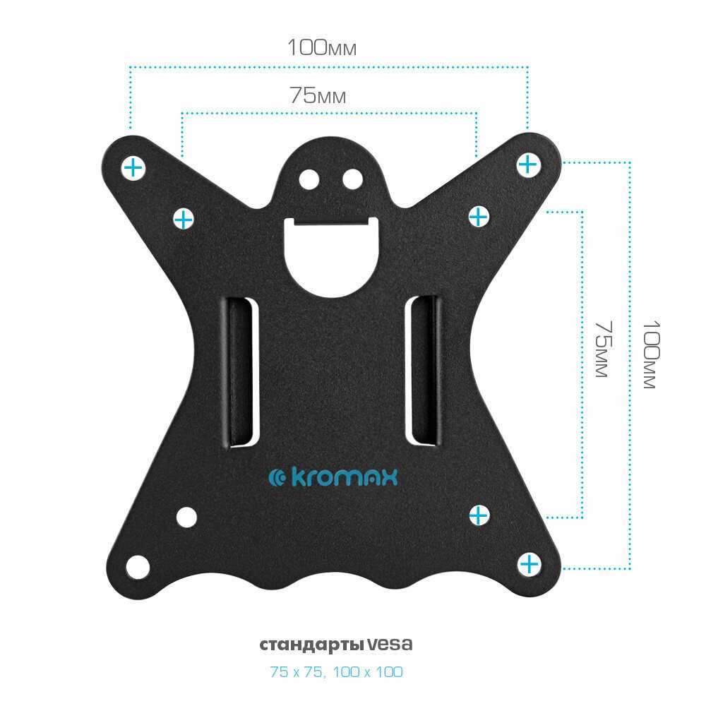 ✅ Универсален по монтажу — поддерживает стандарты VESA 75x75 мм и 100x100 мм.