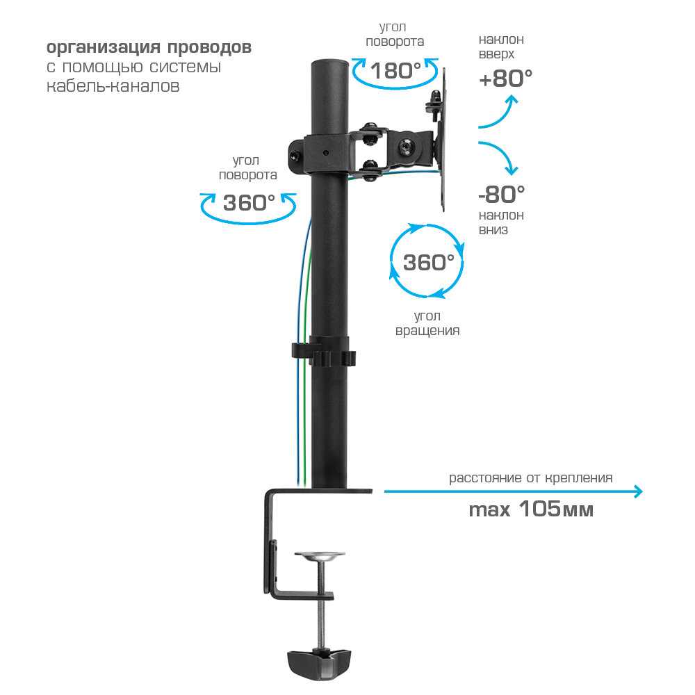 ✅ Экономит место на рабочем столе и позволяет крепить несколько мониторов одновременно.