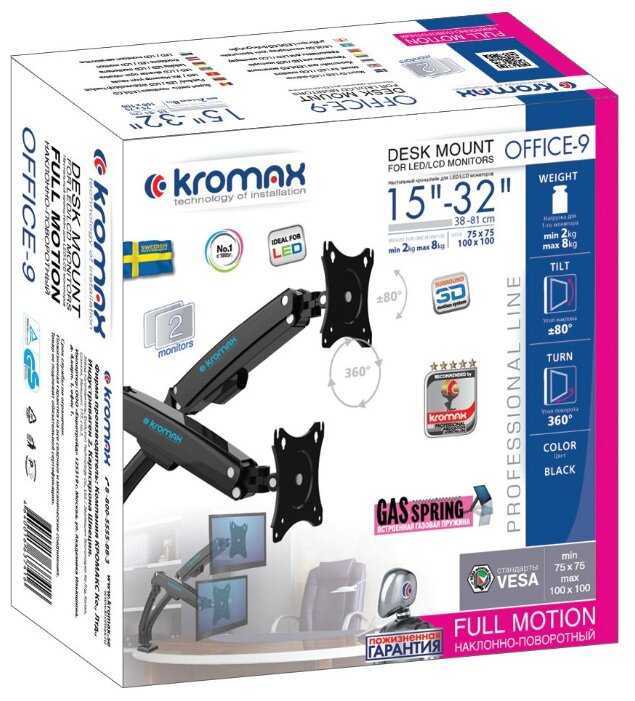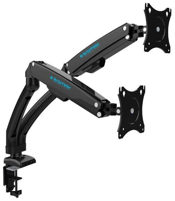 Приобрел этот стильный кронштейн. К покупке меня подтолкнули такие характеристики, как пожизненная гарантия, наличие газовой пружины и система легкой регулировки положения мониторов. Удобно, что конструкция допускает выбор способа крепления кронштейна. Их 2: через отверстие с помощью винта на поверхность стола и с помощью зажима к краю стола. Я воспользовался возможностью закрепить кронштейн к краю стола. Зажим позволил мне надежно закрепить кронштейн, не затратив много времени. Навесил два 32" монитора. каждый из которых весил почти 7 кг. Кронштейн спокойно выдержал практически максимальную нагрузку. Конструкция этого кронштейна очень удобна, т.к. позволяет вращать мониторы на 360 градусов, поворачивать мониторы на те же 360 градусов. а их угол наклона регулируется от плюс 80 градусов до минус 80 градусов. Очень полезна оказалась система легкой регулировки, которая позволила, с помощью шарнира, легко отрегулировал нужное положение мониторов. А наличие газовых пружин позволили плавно установить нужную высоту мониторов над поверхностью стола. Есть так же возможность изменять ориентацию мониторов с портретной на альбомную, и обратно. И это я поделал мгновенно, без каких либо дополнительных регулировок - простым поворотом уже закрепленного монитора на 90 градусов. Нужные провода завел через кабель канал - это и эстетично, и практично. Рад, что приобрел в офис такой отличный кронштейн - стильный, надежный и практичный. С учетом адекватной цены за такое качественное изделие - рекомендую.