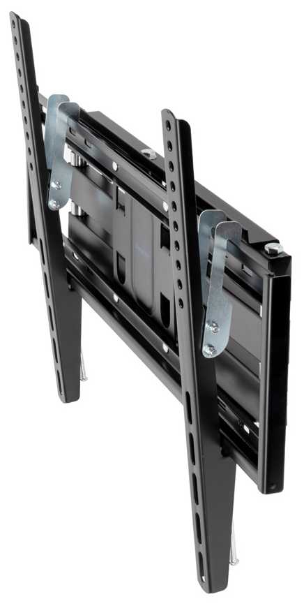 - Регулировка по высоте и горизонтали позволяет точно выставить телевизор, хотя для больших моделей углы достаточны.