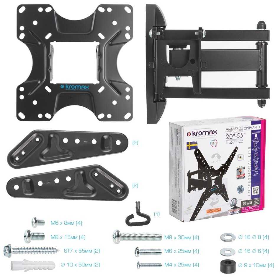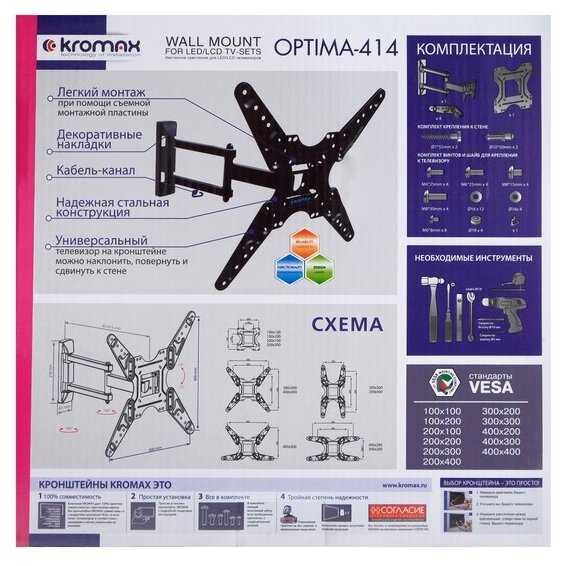 Дополнительная информация : | Комплектация - Кронштейн для телевизора, комплект крепежа для установки ТВ, подробная инструкция на русском языке |