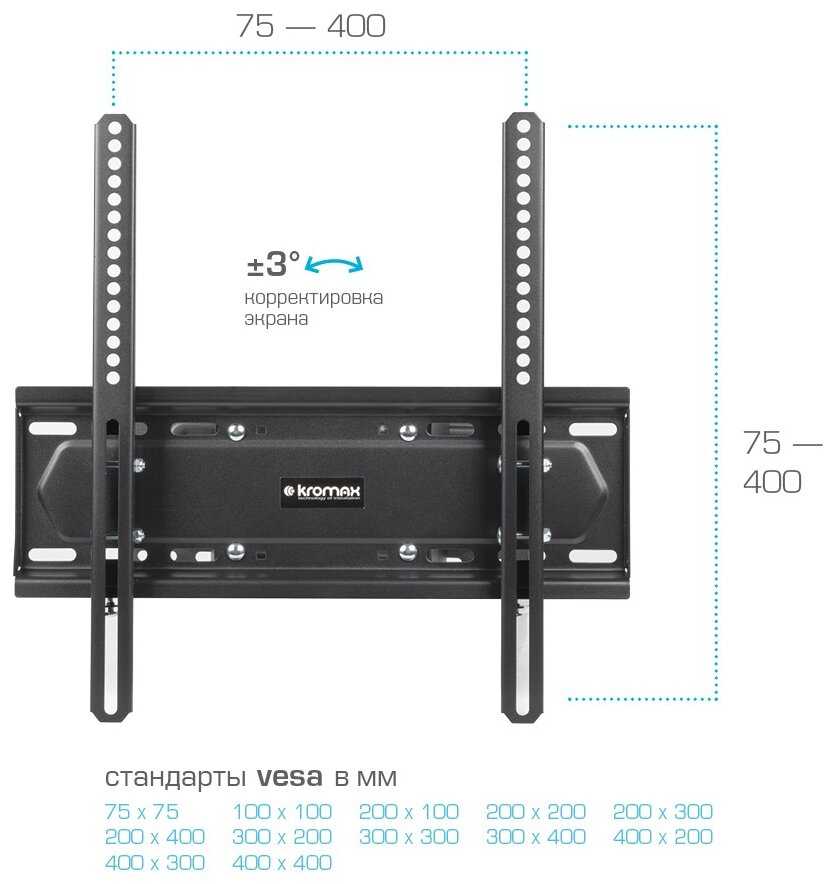 - - Всегда бесили варианты Kromax, фиксации площадки с телевизором, на площадке стены, эти два убогих винтика, можно же заменить крокодилами ? Ну в чем проблемма ?