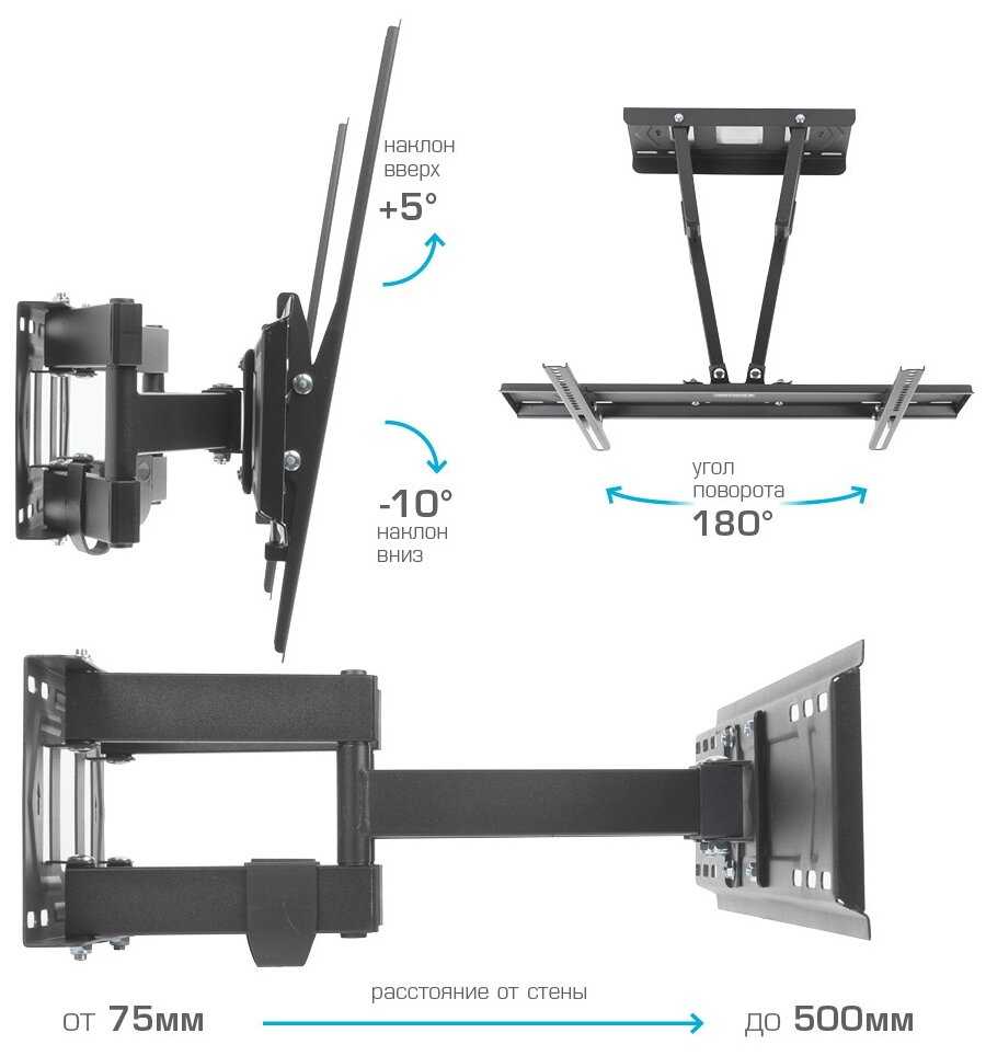 Способ регулировки : | наклон, наклон и поворот, отступ от стены, поворот |