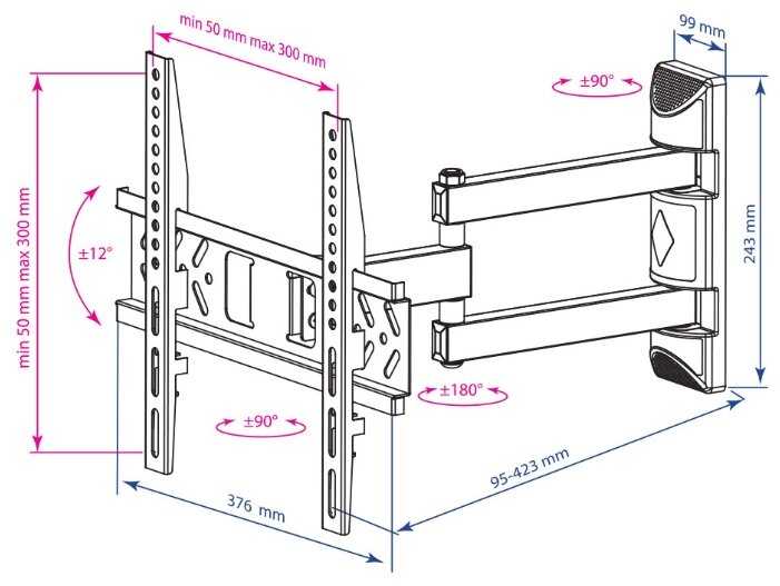 | Регулировка : | наклон, наклон и поворот, отступ от стены, по высоте, поворот |