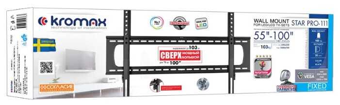 - + Лучший кронштейн для большого и тяжелого телевизора. Заказал 2 для Sony 98" и Sony 85" каждый весит под 70 кг, все идеально село, крепеж удобный, не сильно отстает от стены