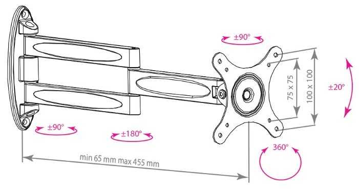 | Регулировка : | наклон, наклон и поворот, отступ от стены, поворот |