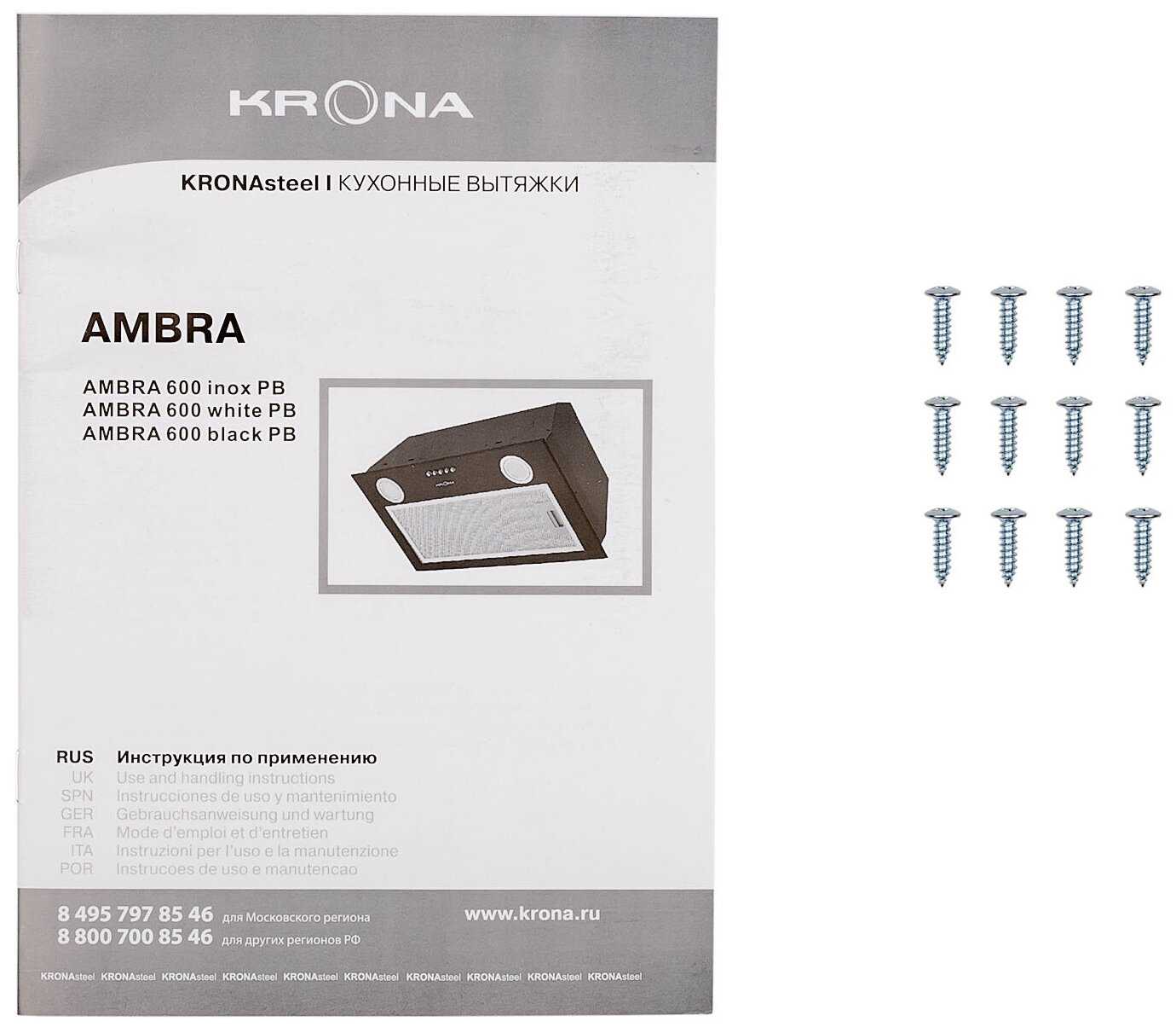 Отзывы о Вытяжка кухонная KRONA AMBRA 600 inox PB встраиваемая нержавеющая сталь