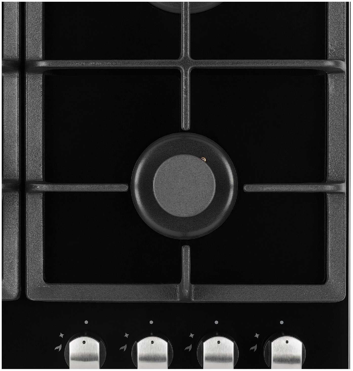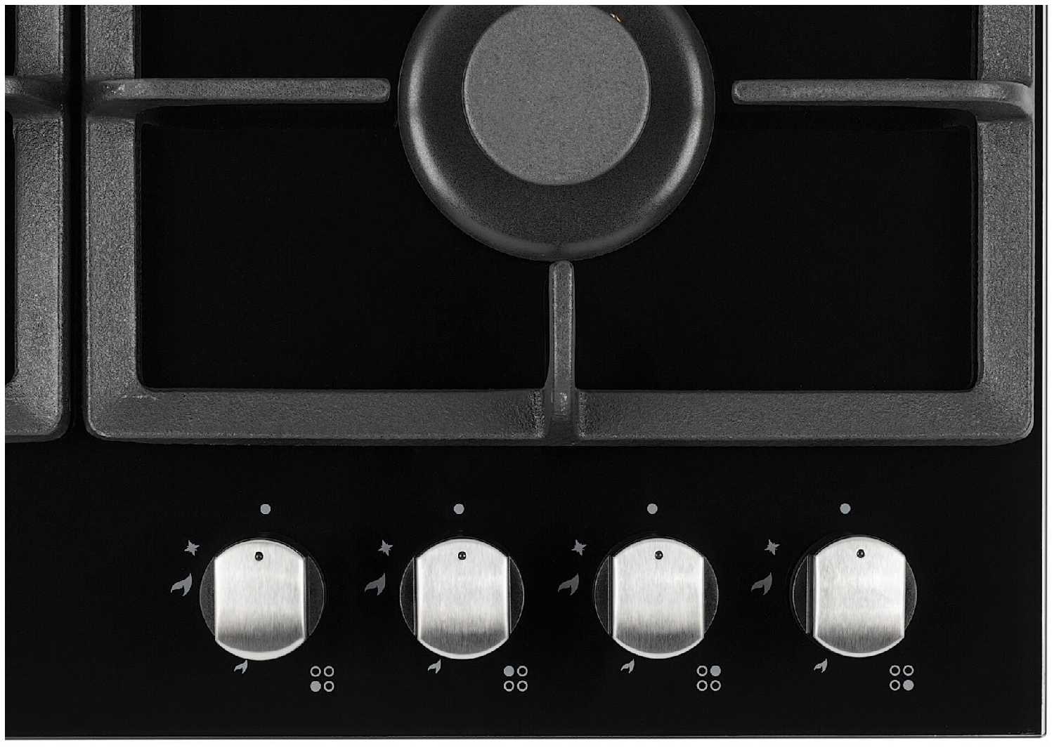 - + Конфорки с газоконтролем и автоматическим электроподжигом. Сама поверхность белая из закаленного стекла. Решетки чугунные, кастрюли и сковороды стоят на них надежно и крепко.