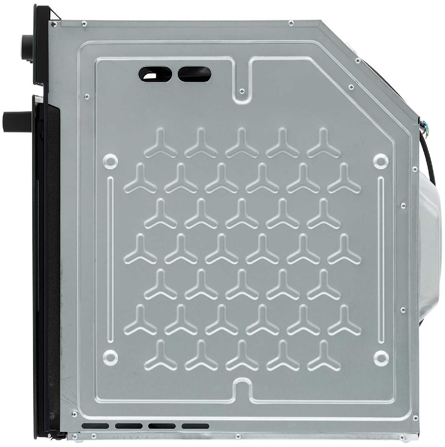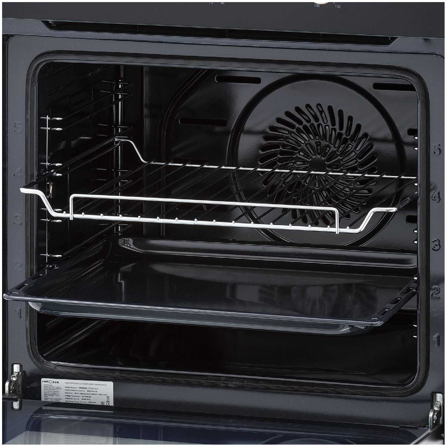 Прекрасная цена за такой замечательный духовой шкаф. Внутри шкафа эмаль лёгкой очистки, дверца с функцией усиленной теплоизоляции, то есть дверь не нагревается во время работы, это очень здорово, с учётом того, что у нас в семье дети, которые вечно куда-то лезут. Удобные поворотные ручки. В комплекте был один противень и одна решётка. Покупкой довольны, шкаф замечательный, еду готовит вкусно и аппетитно.