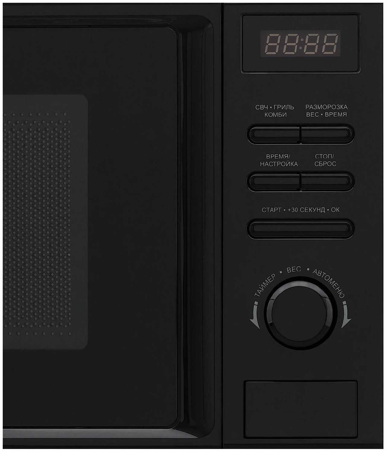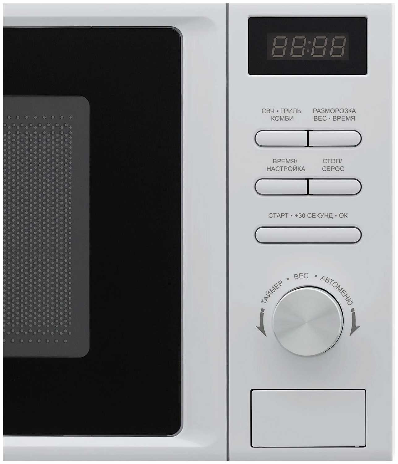 Функционал печи впечатляет: восемь встроенных программ приготовления позволяют легко готовить различные блюда. Особенно удобно, что есть режимы размораживания по весу и времени. Управление простое благодаря поворотному переключателю и кнопкам, а защита от детей добавляет уверенности в безопасности использования.