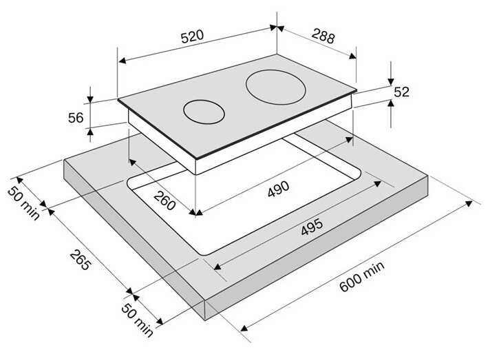 - Панель имеет современный вид с прямыми линиями и квадратными конфорками, что делает её подходящей для малогабаритных кухонь и студий.