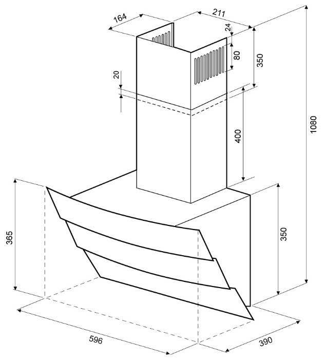 Весьма нестандартное устройство, этот его корпус состоящий из трех панелей разделенных между собой маленькими промежутками, просто прелесть… Но вместе с этим вытяжка смотрится строго, конечно тут еще цвет и матовое покрытие решают. Очень рекомендую именно такие вот наклонные вытяжки тем, у кого пространство позволяет, они гораздо изящнее. Единственное что меня смущало, так это узкая всасывающая поверхность, но на деле оказалось что это вообще не помеха и мощность достаточно высокая чтоб узкую поверхность компенсировать.