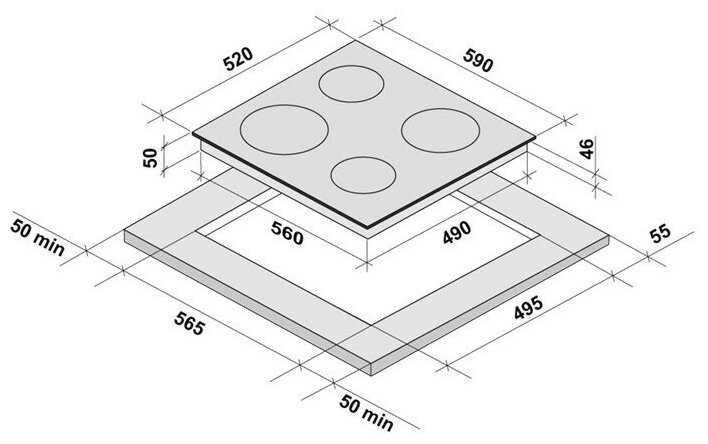 - общее количество конфорок: 4