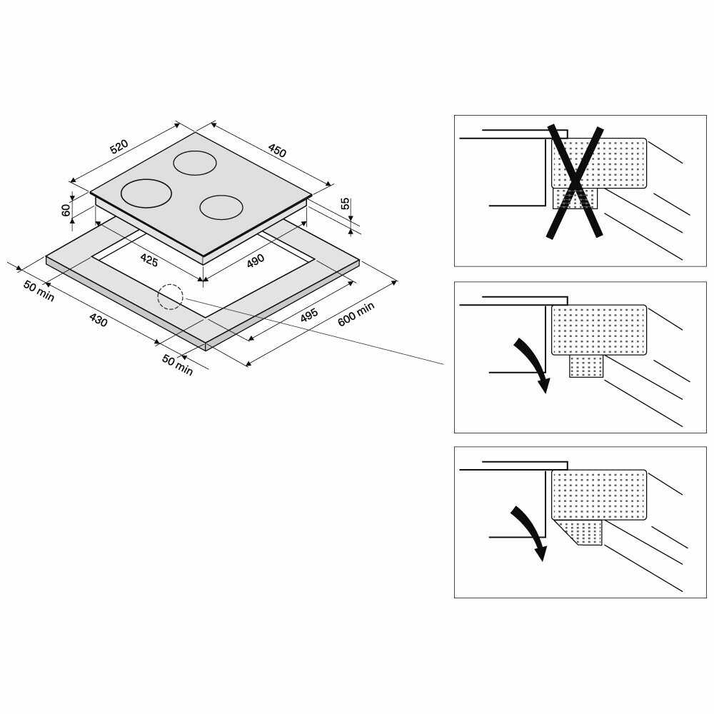 В отзывах подчеркивается, что панель подходит для толстых столешниц (от 30 мм), но требует обязательного зазора снизу для вентиляции. Пренебрежение этим правилом ведет к критическому перегреву электронных компонентов. -