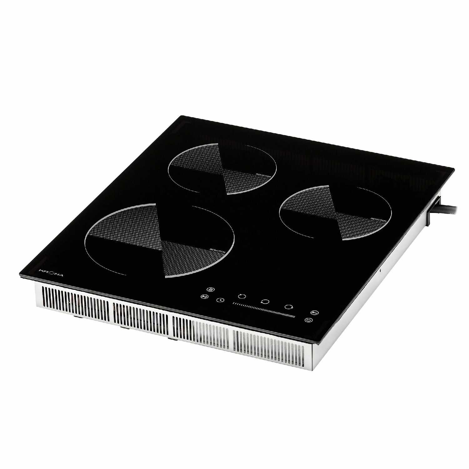 Главным преимуществом признана компактность (45 см) и наличие трёх конфорок разного диаметра, включая увеличенную зону для крупной посуды. Плоская стеклокерамическая поверхность упрощает уход: загрязнения удаляются "одним движением губки" без риска попадания влаги в зазоры. Покрытие устойчиво к царапинам — даже при интенсивной эксплуатации не появляются повреждения от посуды. Однако выявлены скрытые минусы: толщина панели требует глубокого монтажа в столешницу (до 55 мм), а нижняя часть корпуса ощутимо нагревается при работе. Отдельные пользователи сообщали о "маркости" стекла, но большинство это не подтверждает.