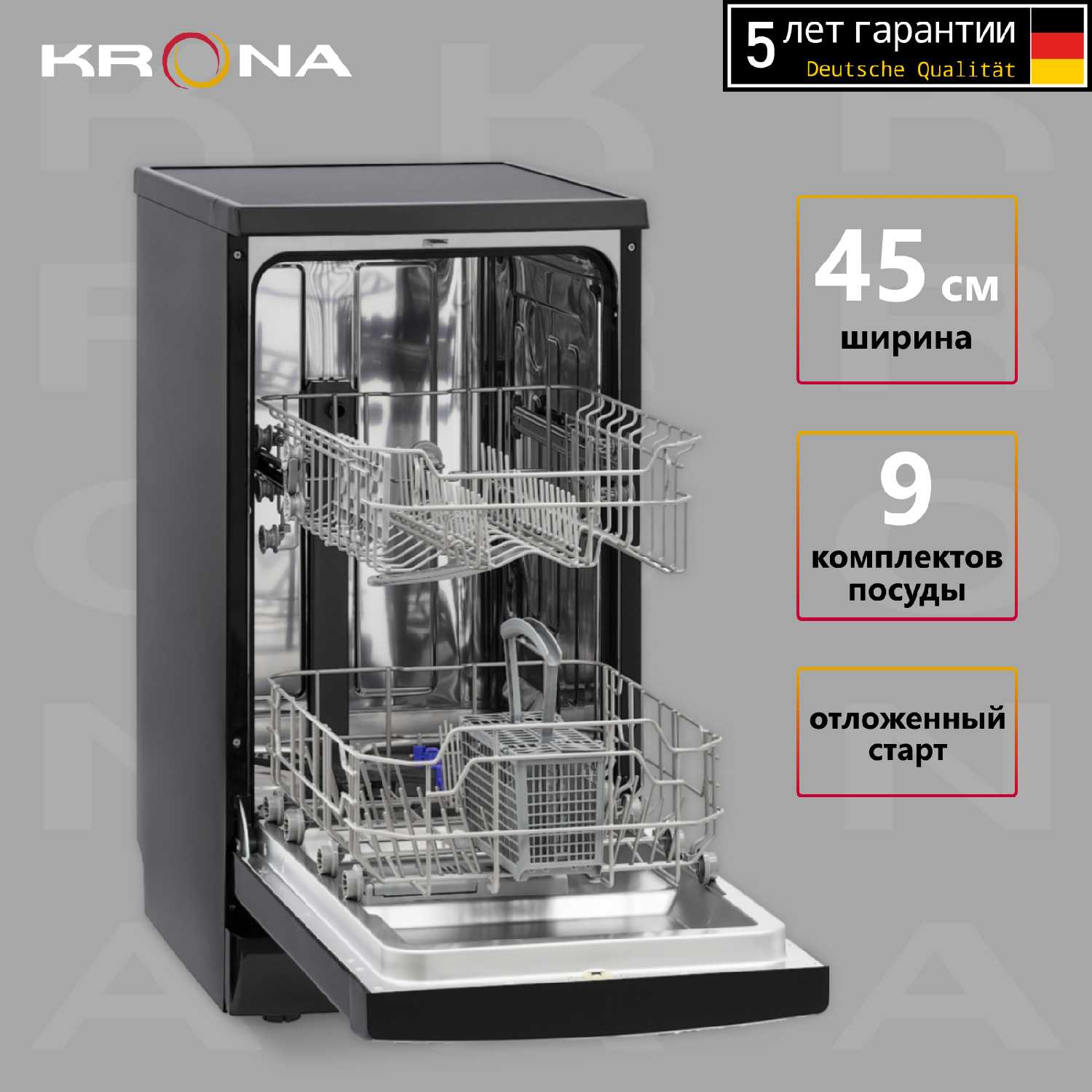 Отзывы о Посудомоечная машина KRONA RIVA 45 FS BL отдельностоящая черная