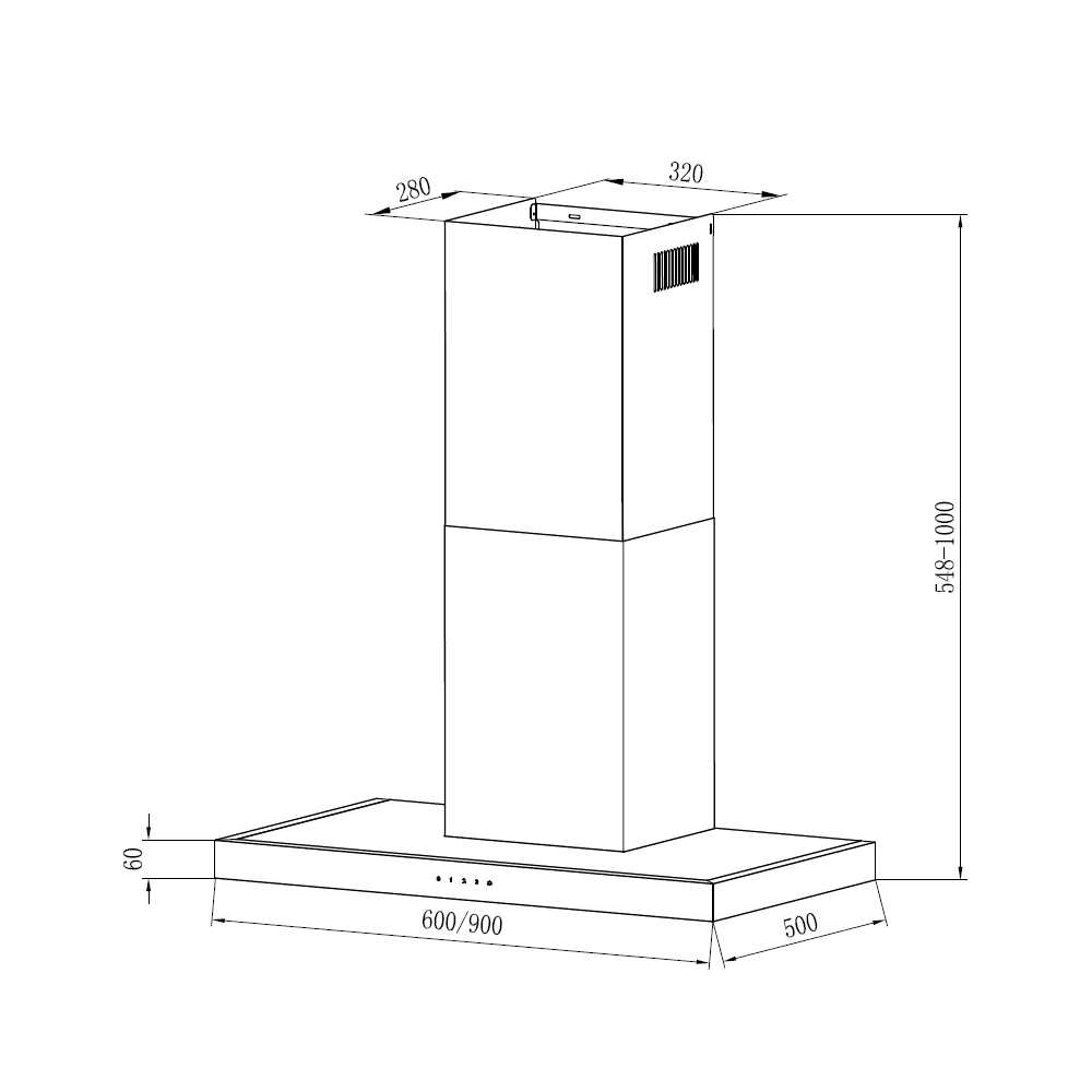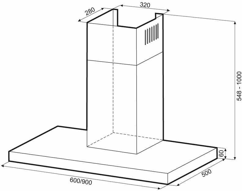 - Ширина 90 см оптимально покрывает стандартные варочные поверхности, обеспечивая равномерный захват испарений.