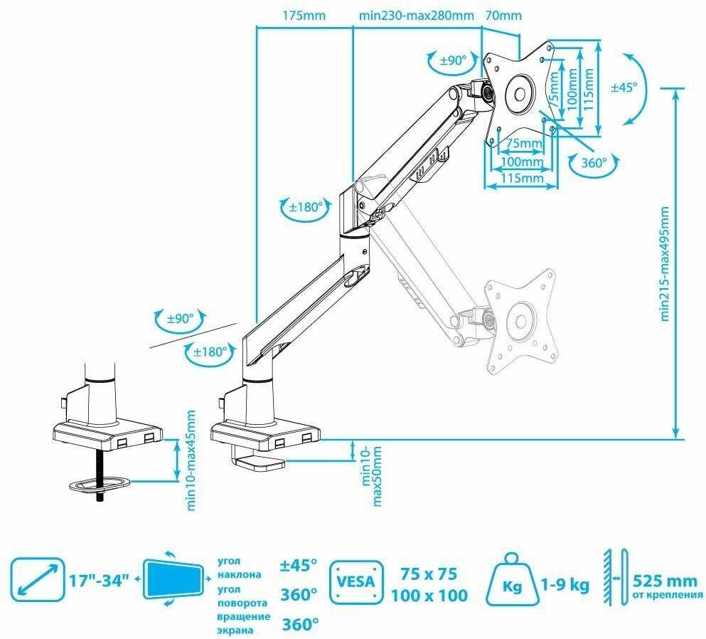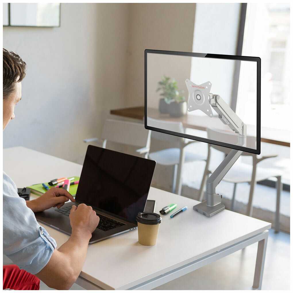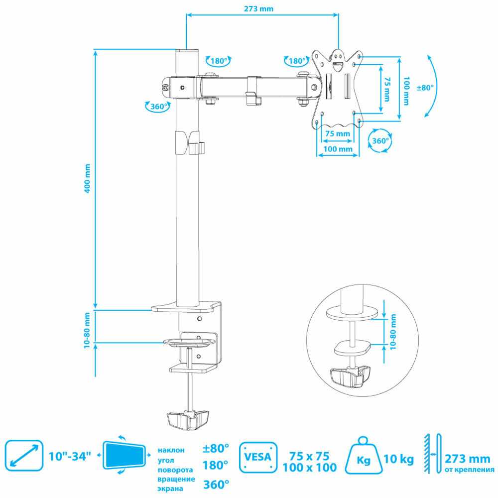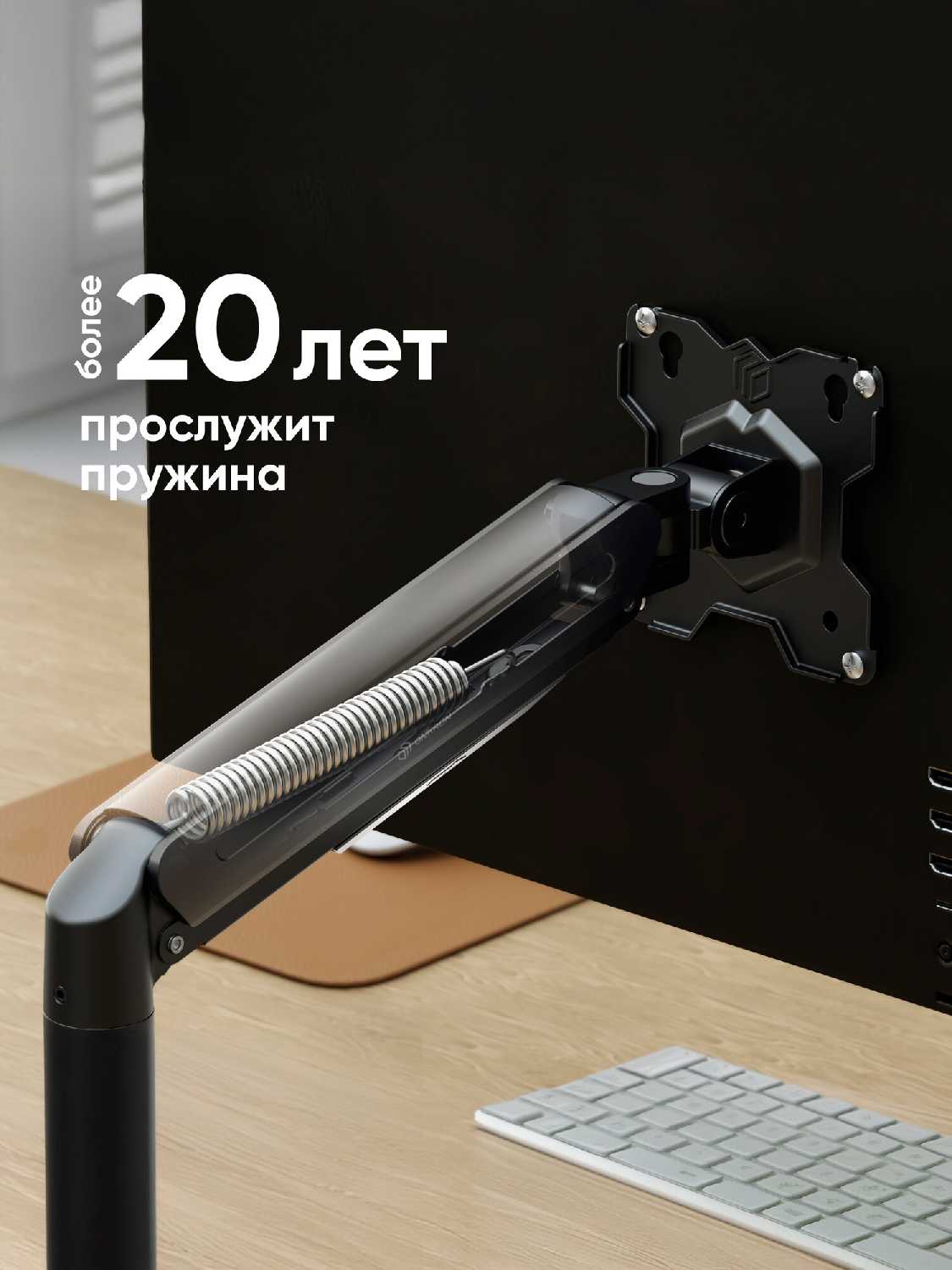 - Отличный кронштейн, держит два монитора 27 дюймов по 3,9 кг каждый.При установке учитывайте, что основные “ноги” полностью не выкручиваются назад (на 2 фото ...