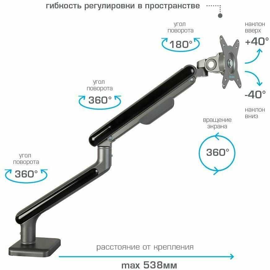 6.6/10 балловBuro M061 черный 15"-32" макс.8кг крепление к столу.