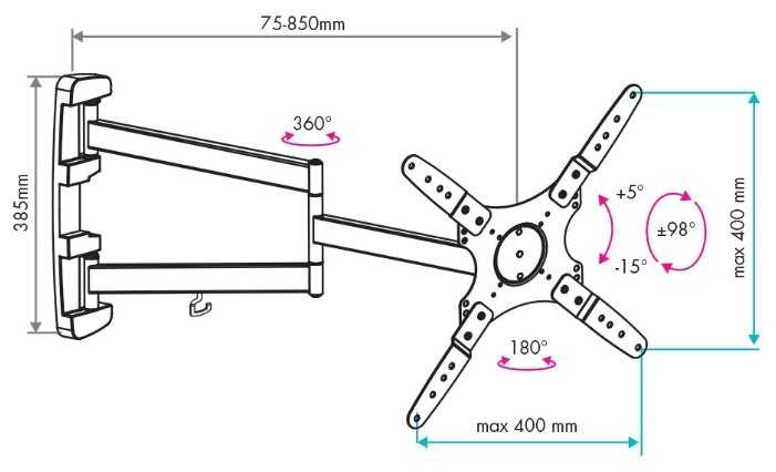 Характеристики:- кронштейн на стену назначение: ЖК-телевизор Максимальная нагрузка 45 кг диагональ ТВ 32-90 дюйм наклон