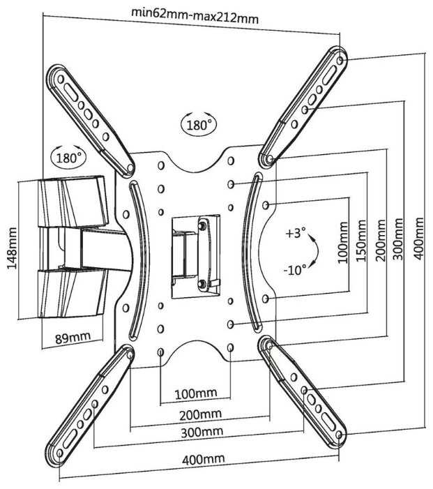 Характеристики:- кронштейн на стену назначение: ЖК-телевизор Максимальная нагрузка 25 кг диагональ ТВ 26-65 дюйм наклон поворот