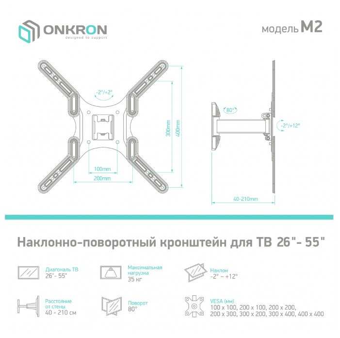 ONKRON кронштейн для телевизора 26"-65" наклонно-поворотный, чёрный M2