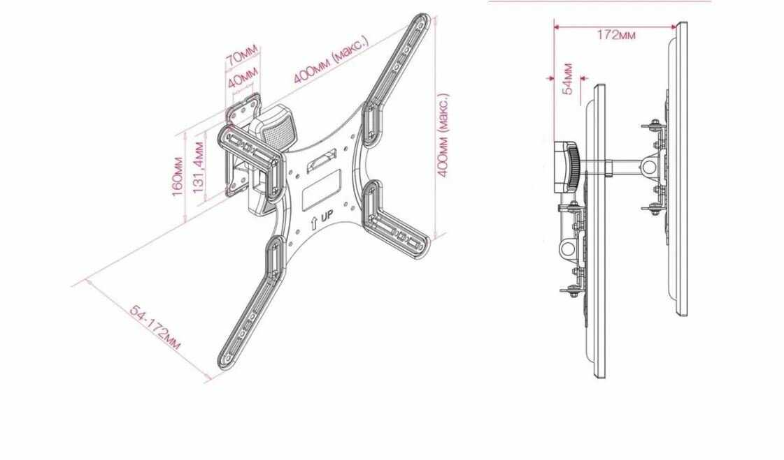 Характеристики:- кронштейн на стену назначение: ЖК-телевизор Максимальная нагрузка 40 кг диагональ ТВ 32-70 дюйм