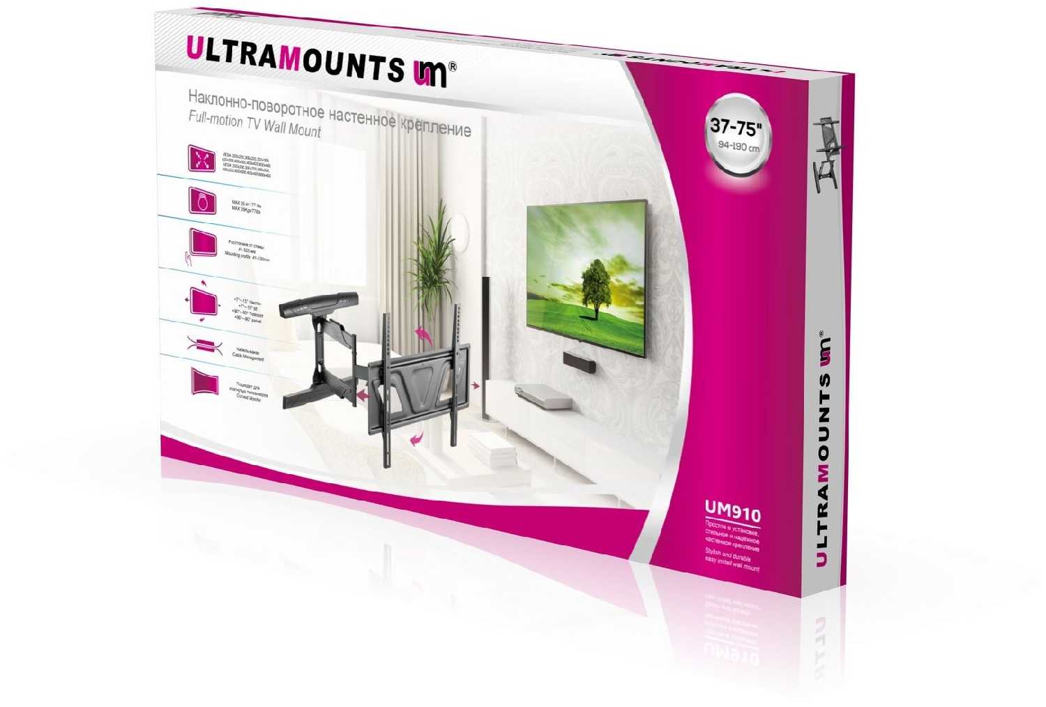 - диагональ ТВ 37" - 75"
