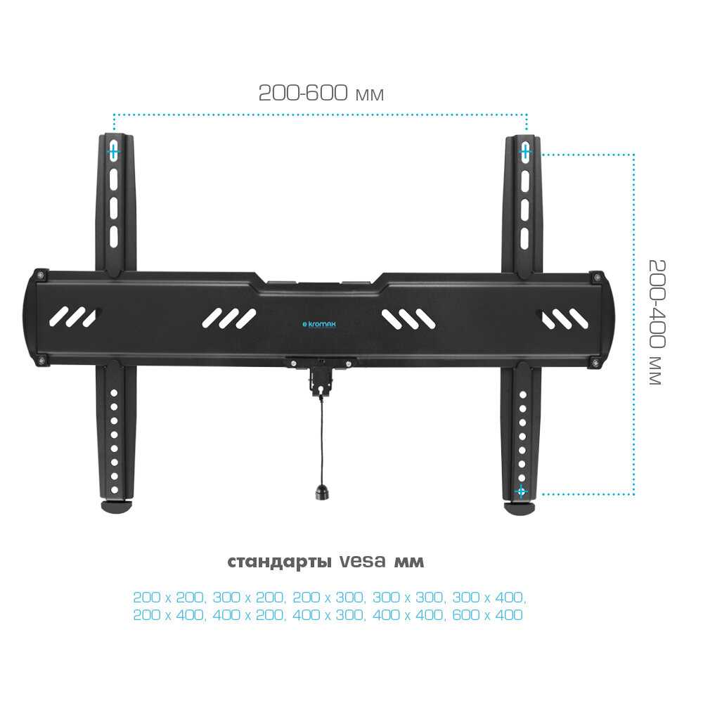 Характеристики:- кронштейн на стену назначение: ЖК-телевизор Максимальная нагрузка 45 кг диагональ ТВ 42-65 дюйм