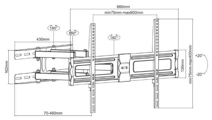 - вылет от стены/потолка 70-460 мм