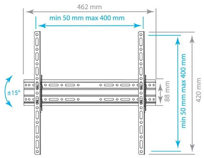 Характеристики:- кронштейн на стену назначение: ЖК-телевизор Максимальная нагрузка 35 кг диагональ ТВ 15-47 дюйм наклон