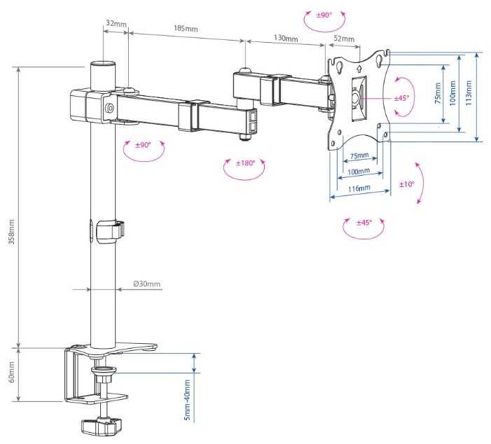 Характеристики:- кронштейн на стену назначение: ЖК-телевизор Максимальная нагрузка 40 кг диагональ ТВ 22-65 дюйм наклон поворот