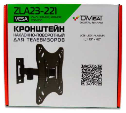 7.6/10 балловDivisat ZLA23-221 наклонно-поворотный кронштейн для телевизоров с диагональю 13"-42