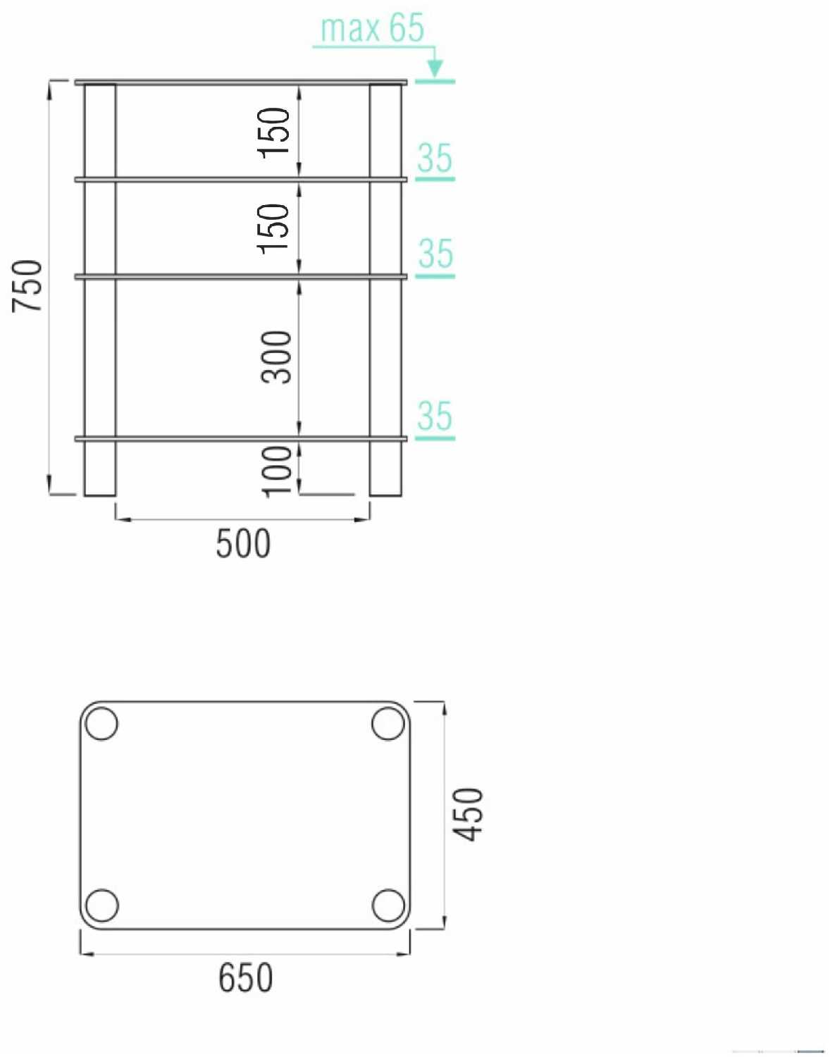 - Количество полок 2