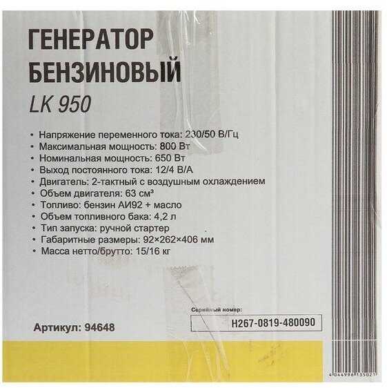 Отзывы о Бензиновый генератор Kronwerk LK 950