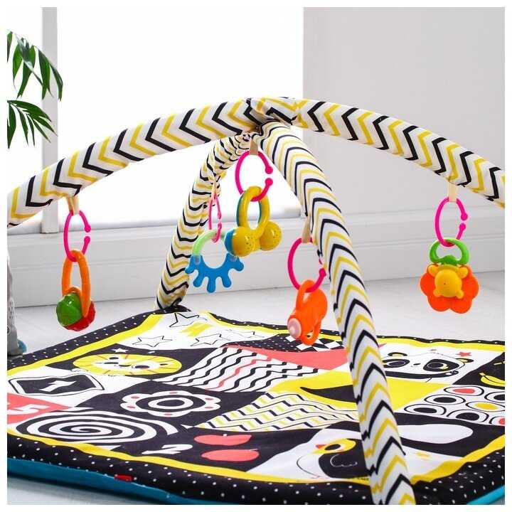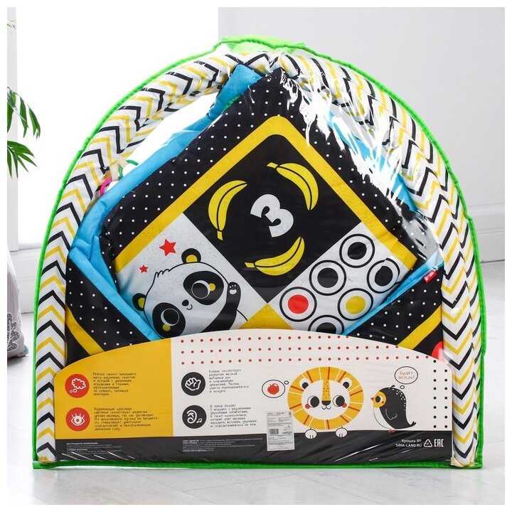 - - Качество ткани самого коврика оставляет желать лучшего, вся скатывается, к ней все липнет. Можно было простегать, пустить пару швов, тк пока ребёнок на коврике, он весь под него подминается, что мешает его движениям.