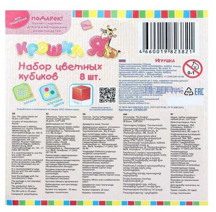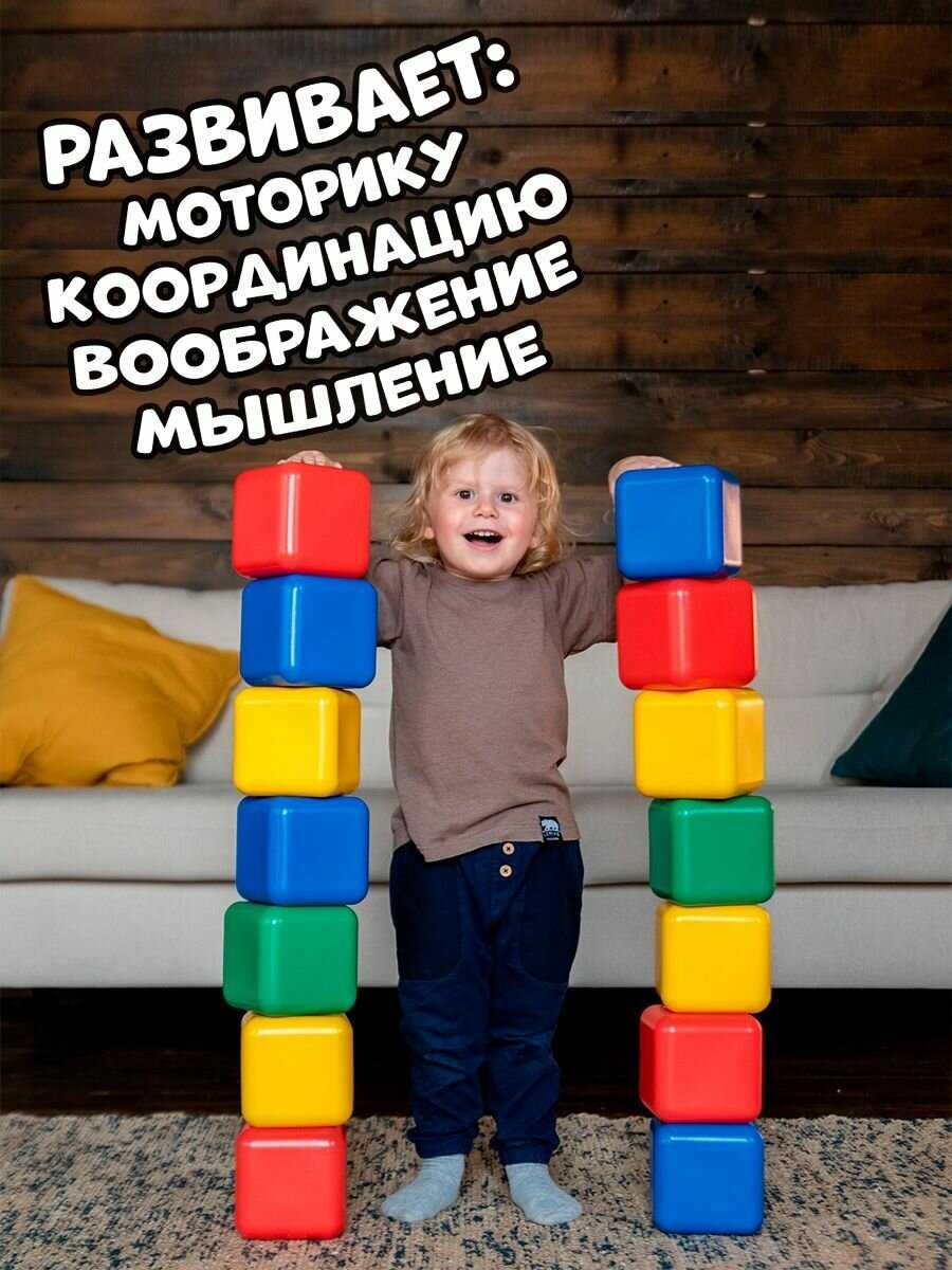 - + Хорошие кубики. ребра, углы округлые, яркие, лёгкие. Размер для маленькой ручки!