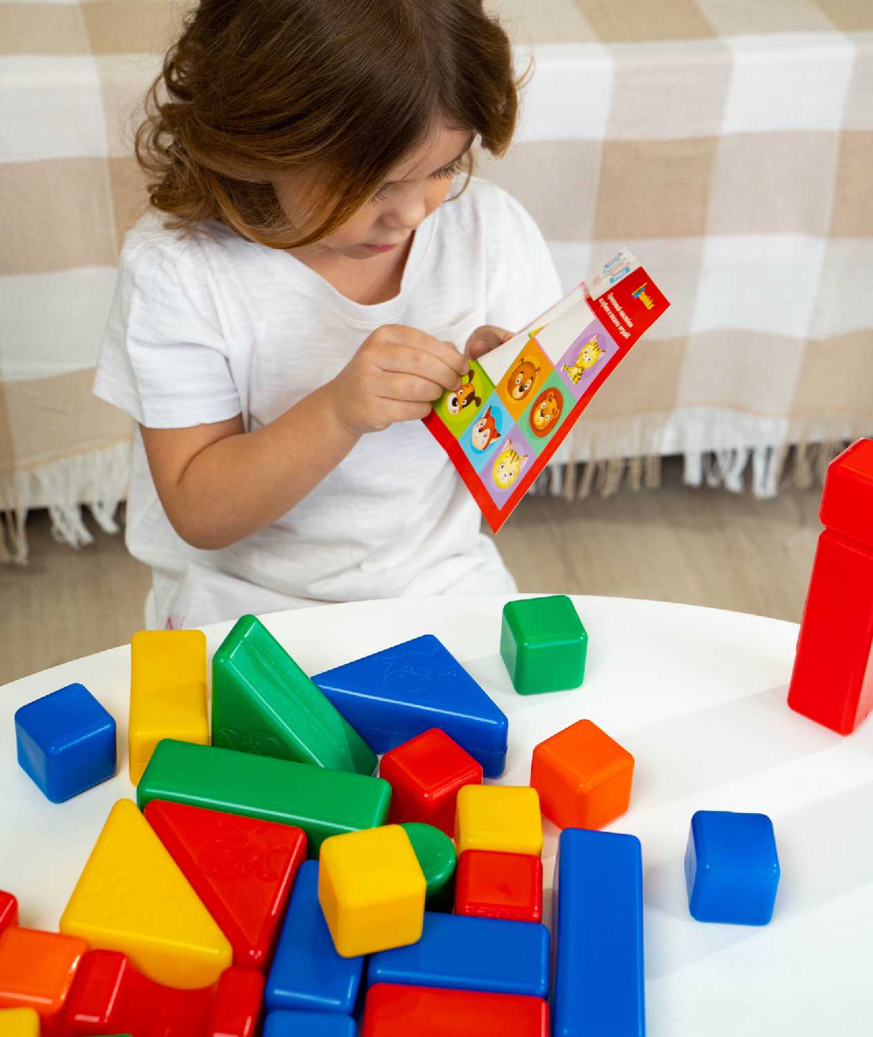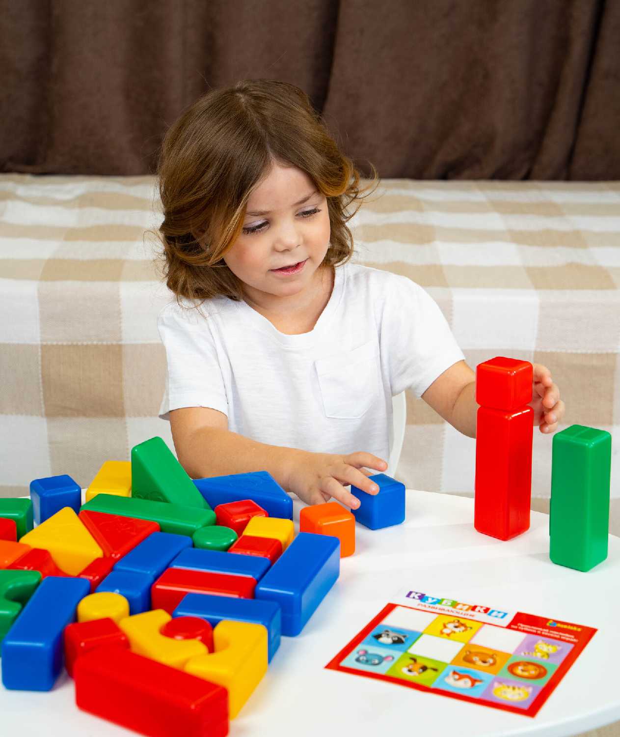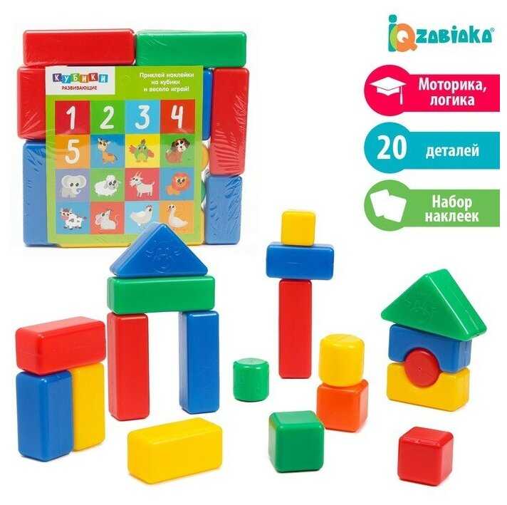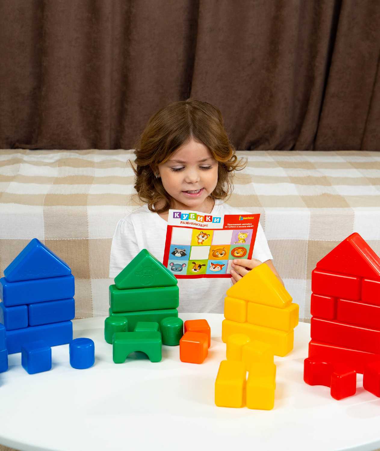 - + яркие кубики, много штук в наборе. не большие и легкие, для маленьких детских ручек как раз.