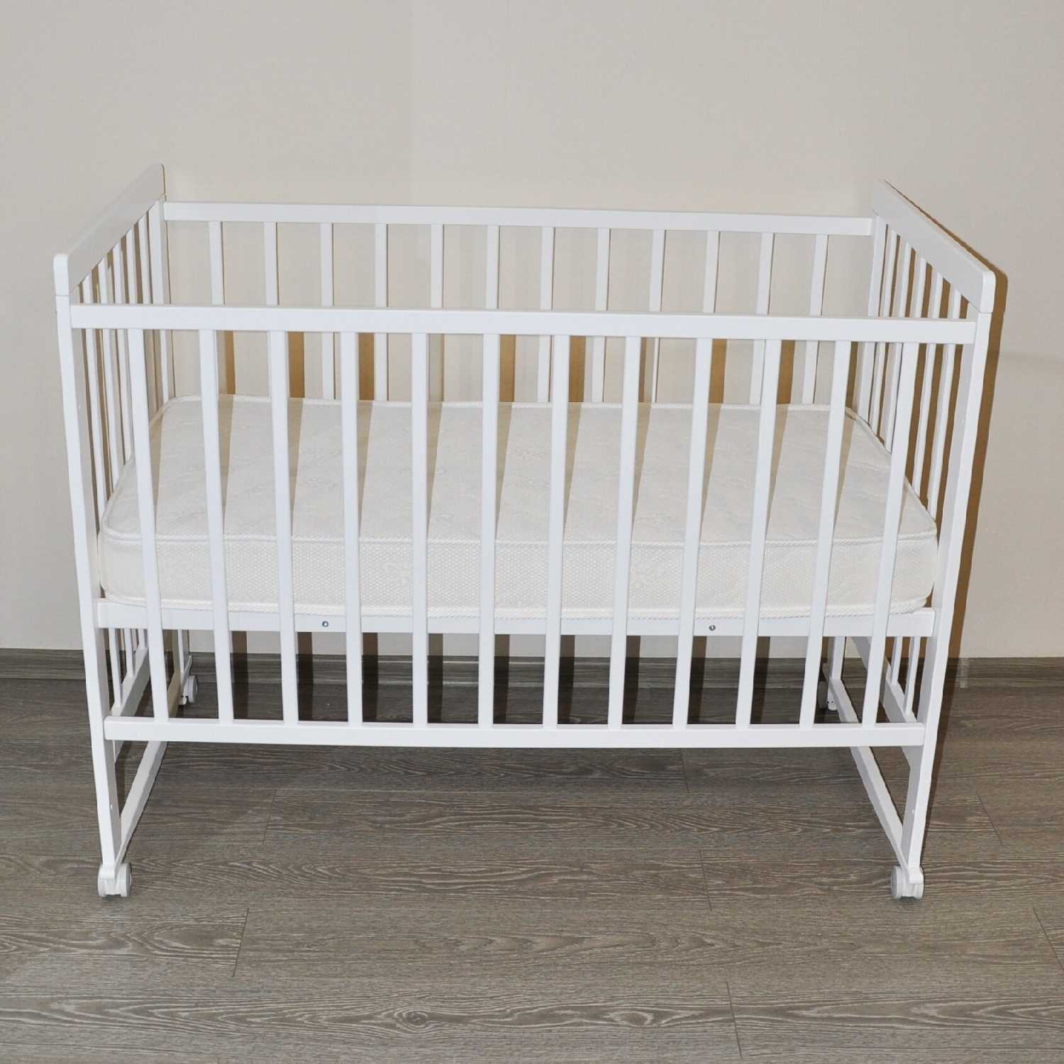 Характеристики:- классическая кроватка выдвижной ящик каркас из дерева и ДСП маятниковый механизм качания размеры 70x124x103 см размер матраса 60x120 см опускающаяся передняя стенка