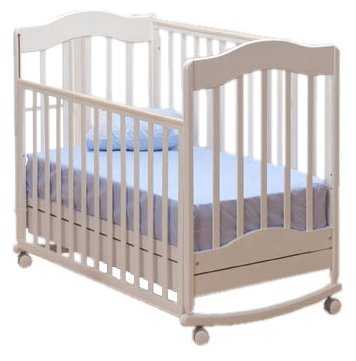 Характеристики:- классическая кроватка выдвижной ящик деревянный каркас маятниковый механизм качания опускающаяся передняя стенка регулировка высоты дна защитные силиконовые накладки