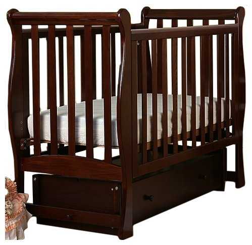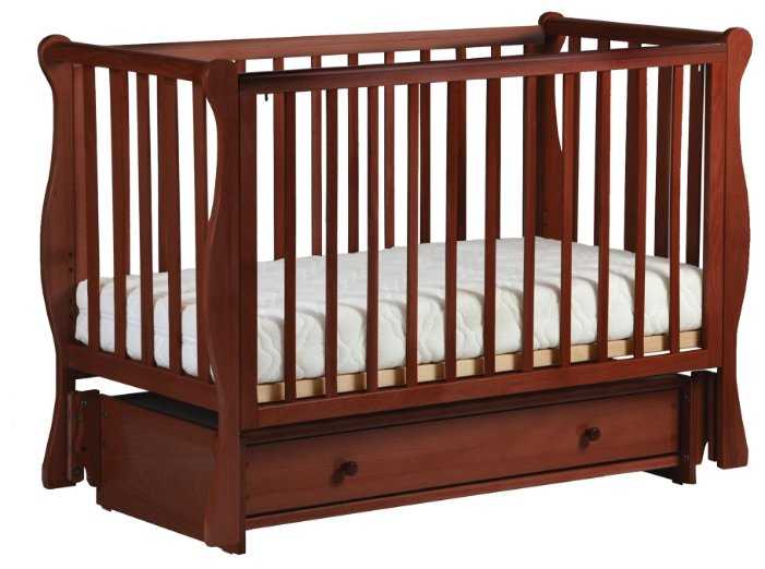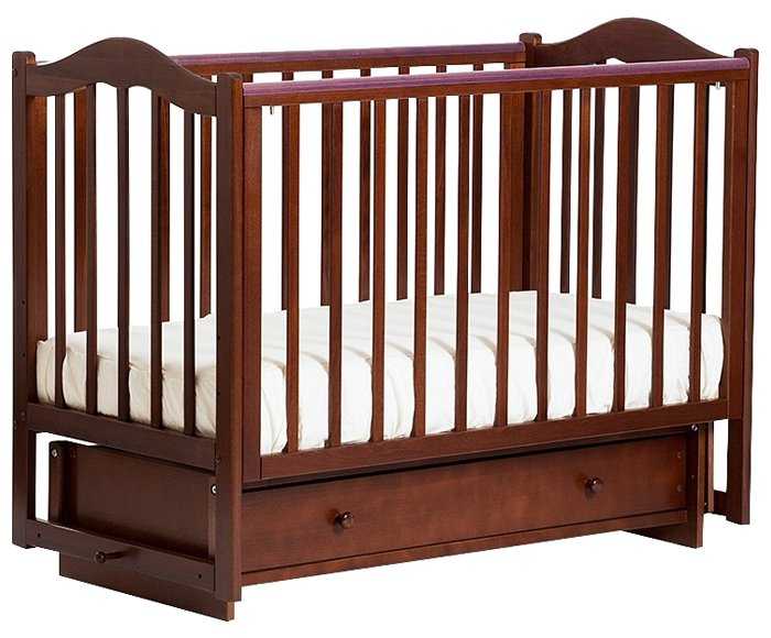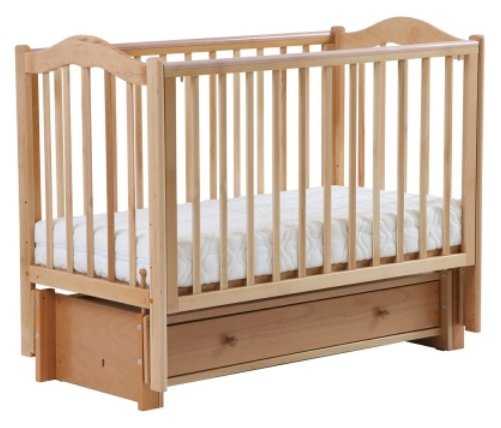Характеристики:- классическая кроватка выдвижной ящик деревянный каркас маятниковый механизм качания опускающаяся передняя стенка