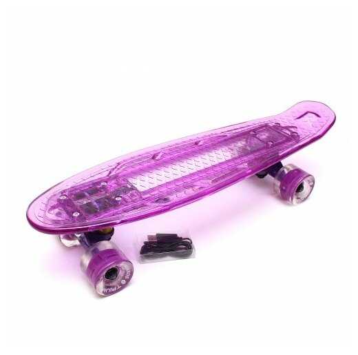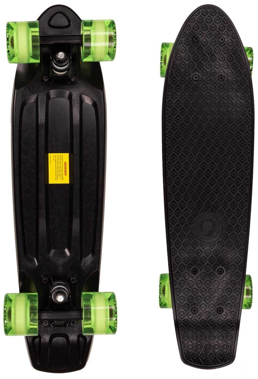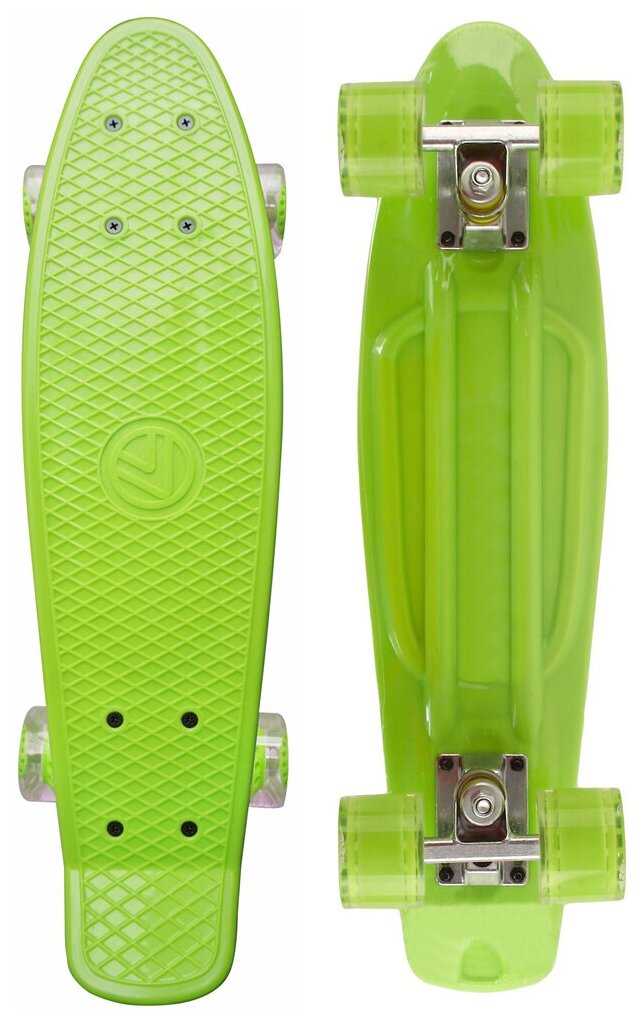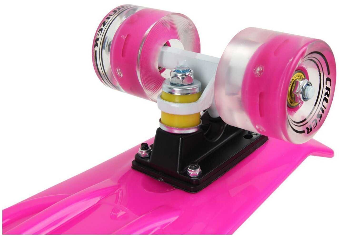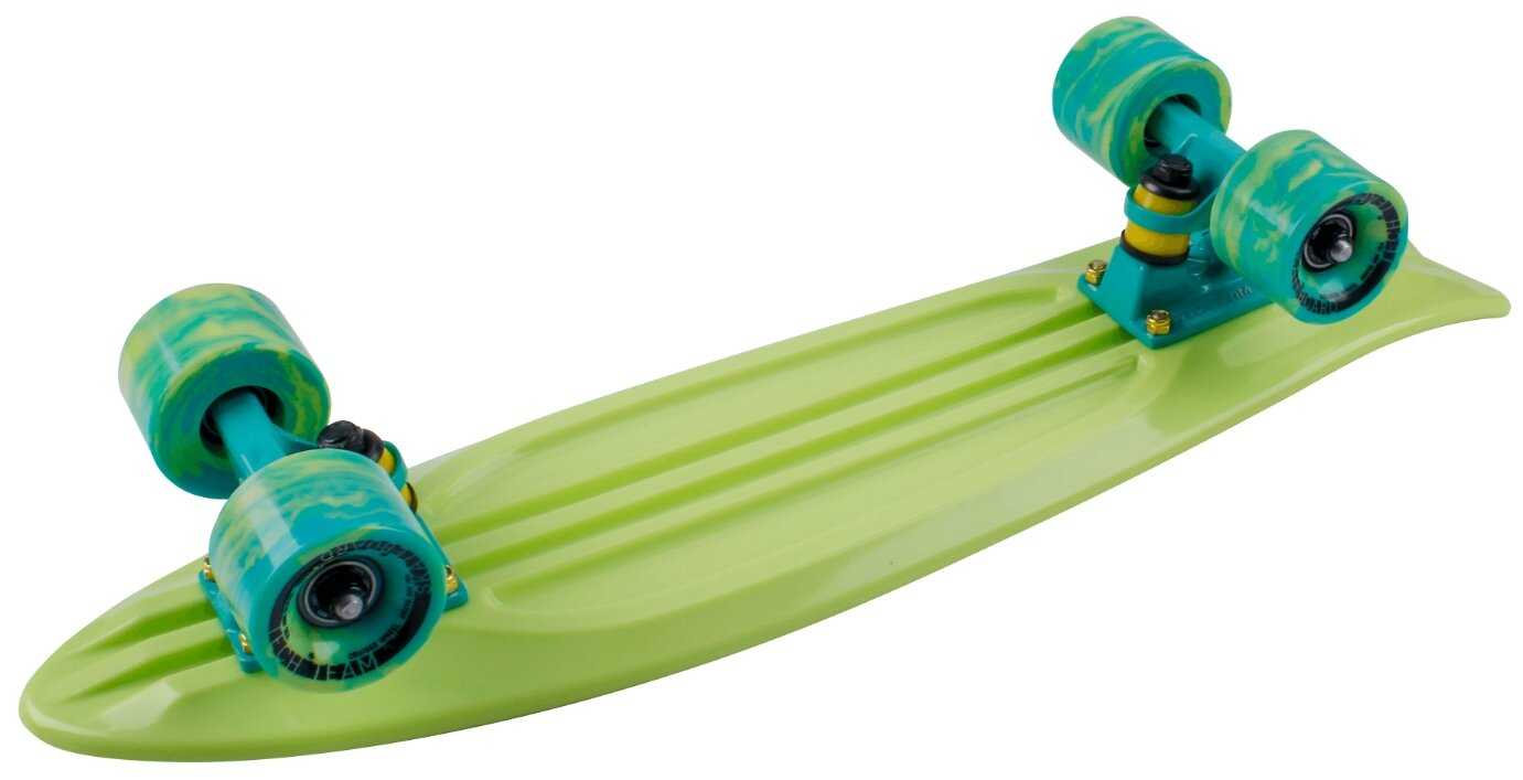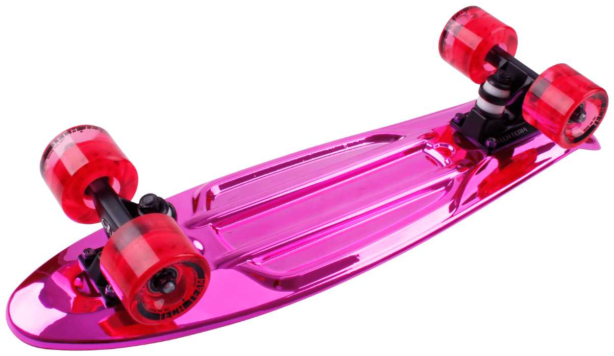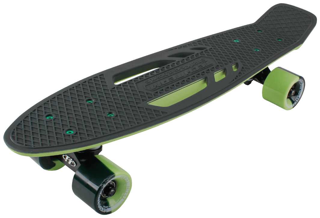 Fish Skateboards 22" с флуоресцентной декой и светящимися колесами.